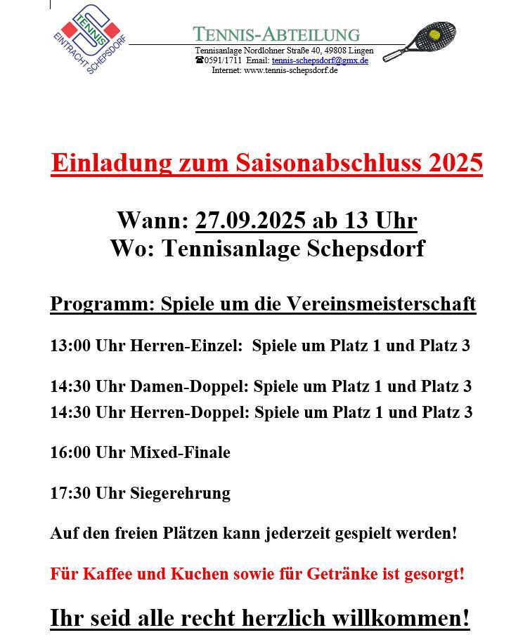 Vereinsmeisterschaften 21.09.2024 im Tennis in Schepsdorf.